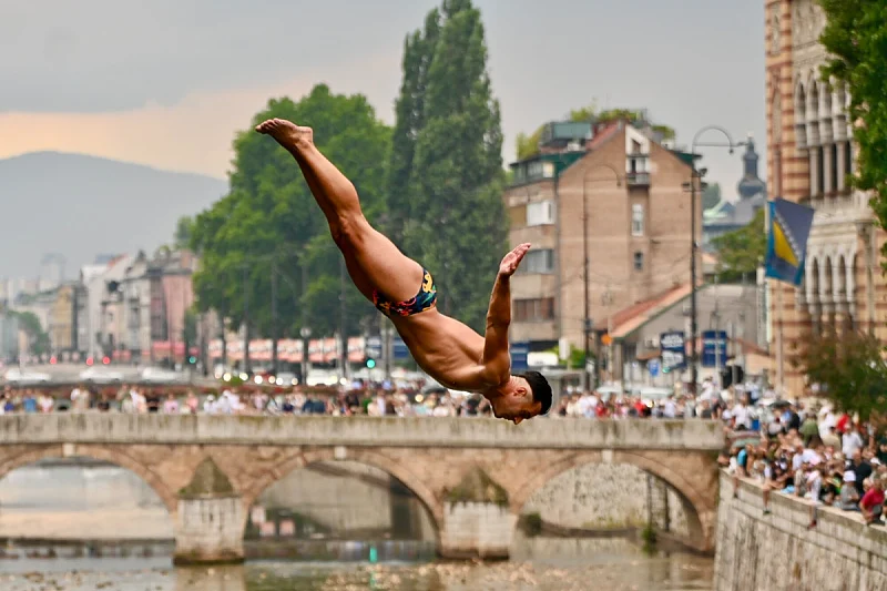 Najbolji skakači iz cijelog regiona i Evrope okupili su se u Sarajevu na sportsko-turističkom događaju “Bentbaša Cliff diving” kako bi pokazali svoje vještine i preciznost u izvedbi skokova sa visine od 19 metara u čemu ih nije spriječila ni kiša.
